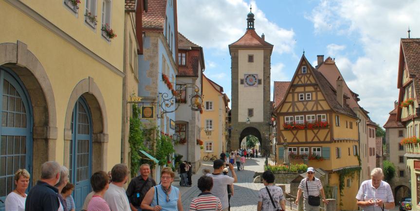 2. dag: Rotenburg ob der Tauber. Efter morgenmaden fortsætter vi turen ned gennem Tyskland, til vi når Rotenburg ob der Tauber, som bl.a. er kendt for de mange originale bygninger fra middelalderen. Vi får lidt tid på egen hånd til at nyde byen, og man kan vælge at gå gennem den gamle bydel med tårne, springvand, porte og vinstuer, farverige bindingsværkshuse, eventyrstemning og brostensbelagte gader eller måske en tur på den intakte bymur med de 42 tårne. Hvis tiden tillader det, kan man også se St. Jacobs kirke og Marktplatz og det smukke rådhus. Den største julebutik i Europa, Käthe Wohlfahrt er også et besøg værd. Efter besøget her kører vi videre til hotellet i Friedrichshafen, hvor vi bliver indkvarteret og får aftensmad.
