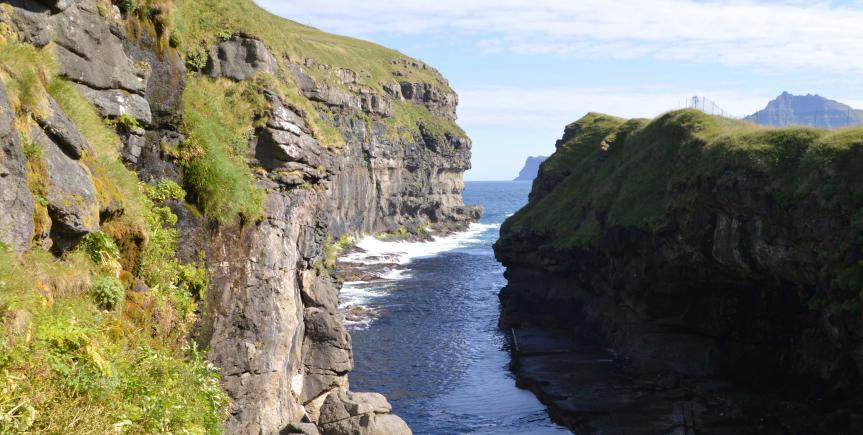 4. dag: Tjørnuvik – Gjógv. Vi kører mod det naturskønne nord og besøger Tjørnuvik, som er en lille idyllisk landsby med fjeldomkransede udsigter. Vi nyder omgivelserne, stilheden, naturen samt kaffe og vafler i et privat hjem. Vi passerer Fossá – Færøernes højeste vandfald og ser de imponerende klipper Kællingen & Kæmpen. Vi kører til Gjógv – en farverig bygd med dramatisk kløft og kystnatur. Vi får frokost (inkluderet) i en lokal og stemningsfuld restaurant, hvor efter vi kører til Navia i Toftir – en færøsk design- og uldbutik. Vi kører tilbage via den imponerende Eysturoyartunnel under havet. Aftensmad på hotellet.