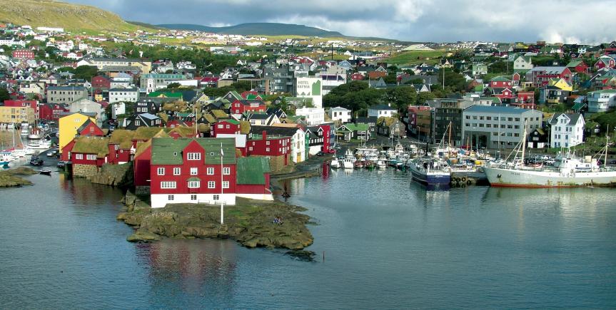 3. dag: Torshavn - Kirkjubøur. Tidlig om morgenen ankommer vi til Torshavn på Færøerne. Vi kører til hotellet og få opbevaret vores bagage, så oplevelserne kan begynde. Vi starter dagen i Torshavn med en historisk og hyggelig gåtur gennem Tinganes – den maleriske gamle bydel med røde bygninger og græstage, Niels Finsens Gøta – en af byens centrale gader med lokale butikker og stemning samt forbi lystbådehavnen, rådhuset og Domkirken. Tid på egen hånd til at nyde frokosten på en af Tórshavns caféer eller restauranter. Om eftermiddagen kører vi til Kirkjubøur, den ældste stadig beboede bygd på Færøerne. Her besøger vi Roykstovan, hvor 17. generation stadig bor i det historiske bondehus samt Magnuskatedralen – en imponerende ruin fra middelalderen med storslået udsigt. Aftensmad på hotellet.