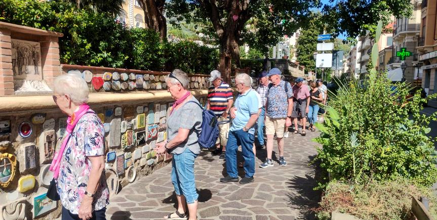 3. dag: Diano Marina - Alassio. Vi bruger formiddagen til at lære byen Diano Marina at kende. Vi går en tur rundt i byen og ser de smalle hyggelige gader, kirken og den skønne strandpromenade. Om eftermiddagen er det muligt at tage med på en udflugt til byen Alassio, hvor vi skal se byens vartegn - en mur med mange farverige fliser med autografer fra berømtheder fra hele verden. Gå en tur langs muren og se om du kan finde fliserne med autografer og hilsner fra bl.a. Salvador Dali, Niki Lauda og den ældste flise, som er fra 1953 med Ernest Hemmingway´s autograf. Der bliver lidt tid til at nyde byen eller gå en tur ud på molen, hvorfra man kan se ind på den charmerende og farverige by. Sidst på eftermiddagen vender vi tilbage til hotellet og får aftensmad.