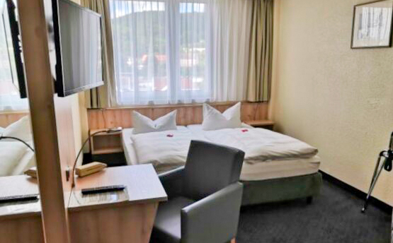 Hotel centralt i Sassnitz, tæt på by og havneområde. Hotellet har egen bar, panoramacafe og restaurant samt indendørs pool. Alle værelser er mod landsiden og har eget bad og toilet. WiFi.