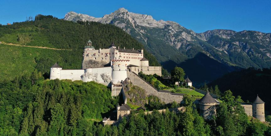 Werfen - Hohenwerfen: Vi kører en tur til Pongau området til slottet Hohenwerfen og videre til Werfen. Ved slottet Hohenwerfen tager vi kabelbanen det sidste stykke op til slottet. Her kan vi dykke ned i Middelalderen og udforske den gamle befæstning fra det 11. århundrede. Her er forskellige udstillinger og til tider også rovfugleshow (pris for kabelbane og udstilling ca. 25 €). Der bliver tid til at nyde en frokost i byen Werfen, som bl.a. er kendt for nogle af optagelserne til ”Sound of Music”.