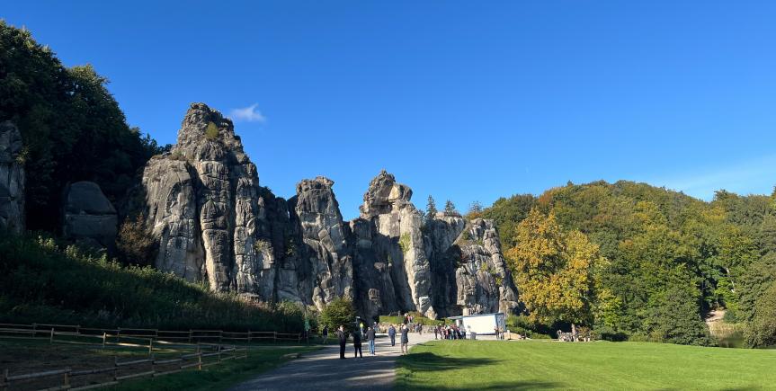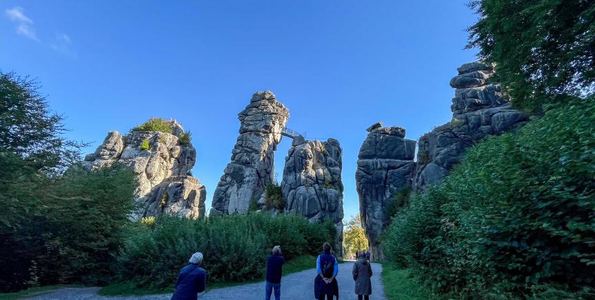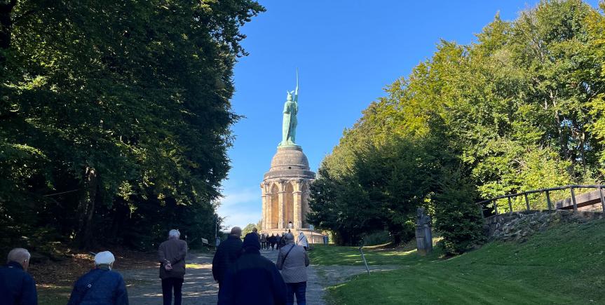 2. dag: Hameln - Hermanns Denkmal - Externsteine. Efter morgenmaden tager vi på en udflugt til den spændende by Hameln, som er blevet kendt for sin fløjtespillende rottefænger. Husene i byen er velrestaurerede, blomsterprydede bindingsværkshuse blandet med enkelte stenhuse. Vi skal se Rottefængerhuset, Bryllupshuset og Rottefængerbrønden. Herfra kører vi gennem det smukke landskab og Teutoburger Wald til udsigtspunktet Hermanns Denkmal - et 54 m højt monument, og dermed et af Tysklands højeste. Alene statuens sværd vejer 550 kg. Hvert år ses stedet af mere end 500.000 besøgende. Senere tager vi til naturfænomenet Externsteine, som består af fritstående klippesøjler, der i middelalderen var et kristent valfartssted. Der bliver mulighed for at gå en rundtur i Schwalenberg med nattevægter.