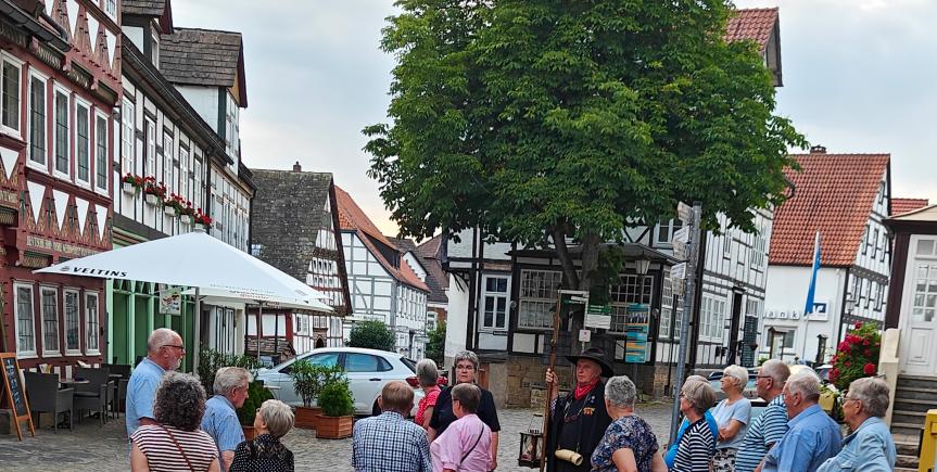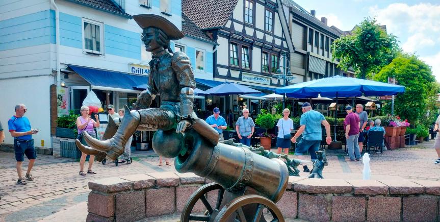 3. dag: Schwalenberg - Bodenwerder. Efter morgenmaden er der tid til på egen hånd at udforske vores egen by. Schwalenberg byder på flere spændende huse og gader, og fra pladsen foran borgen er der en flot udsigt over hele dalen. Der vil også være tid til at gå en tur langs ”byvandet” - den 1,5 km lange kanal, der fører frisk kildevand til byens torv. Sidst på formiddagen kører vi til byen Bodenwerder, smukt beliggende ned til Weserfloden. Her boede Baron von Münchhausen, kendt fra hans eventyrlige eventyr. Efter tid i byen til frokost på egen hånd, er der mulighed for at sejle en dejlig tur på Weser, varighed 2 timer (pris ca. 22 €). Efter sejlturen kører vi tilbage til Schwalenberg til aftensmad.