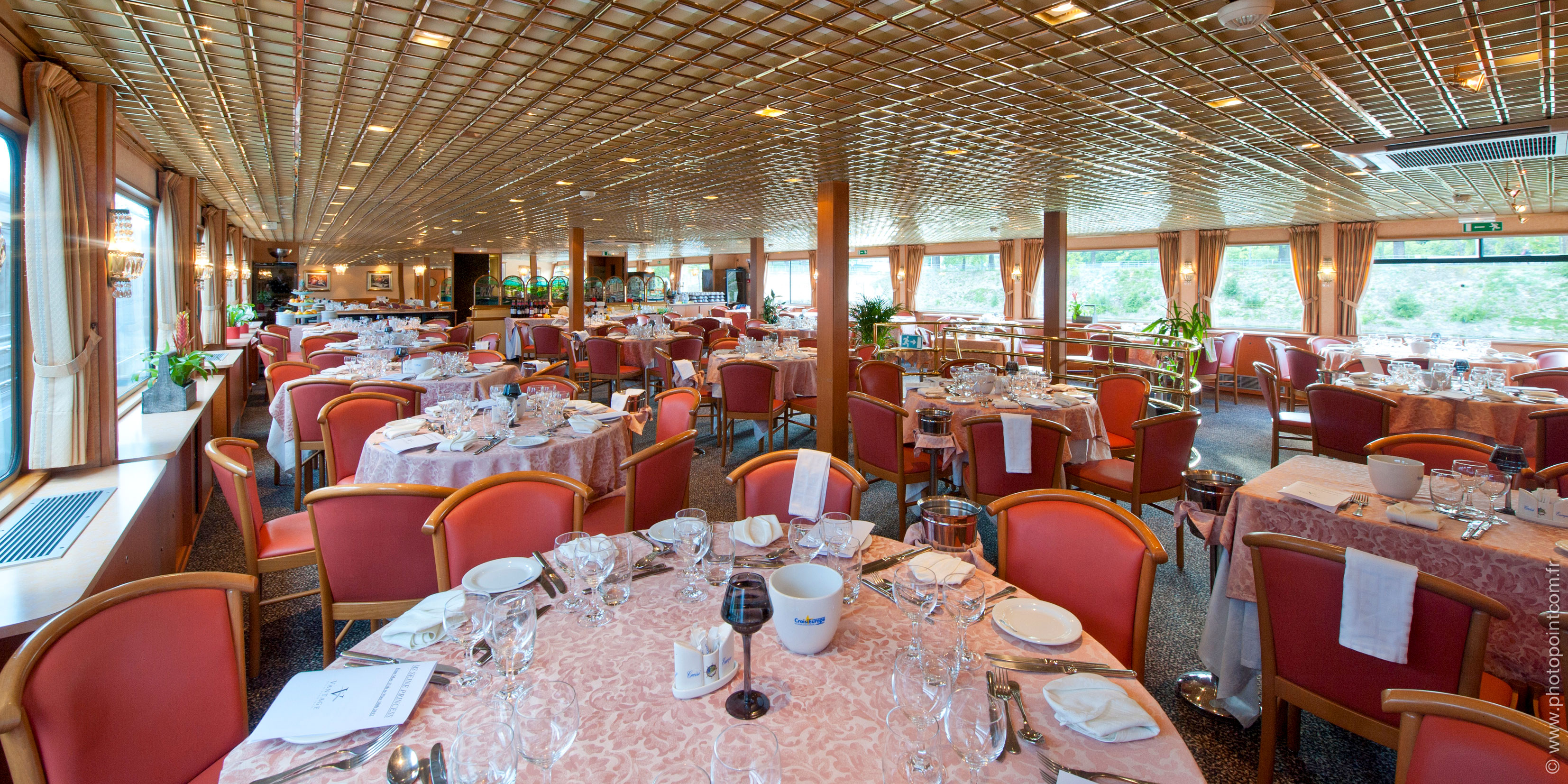 Rederiet/skibet er fransk. Middage er flerrettes og fransk inspirerede, de serveres ved bordet. Drikkevarer er inkluderet ombord og der tilbydes en variation af alkoholiske og ikke-alkoholiske drikkevarer dagen igennem. Alt information er fransk eller engelsk, men vores rejseleder står klar, til at hjælpe, og give informationerne videre på dansk.