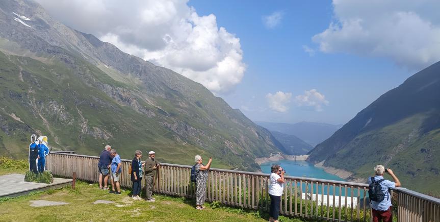 Kaprun: Efter morgenmaden skal vi på en skøn udflugt til et af de mest besøgte steder i Østrig, nemlig Kaprun. Vi kører til foden af bjerget, hvorfra vi skal med en specialbus gennem bjergtunneller og slugter op til "slæden", der ved hjælp af tandhjul trækker os op ad bjergsiden. Herved når vi op til et plateau, hvorfra vi igen kommer med specialbus videre til den smukkeste sø i nationalparken Hohetauern (lokalbus ca. 30 € ). Her ligger søen Mooserboden i 2040 meters højde, og vi får tid at nyde naturen, dæmningen og evt. en forfriskning i et af de to cafeterier, der ligger her. Der er også en udstilling om isen, vandet og bygningen af dæmningen.