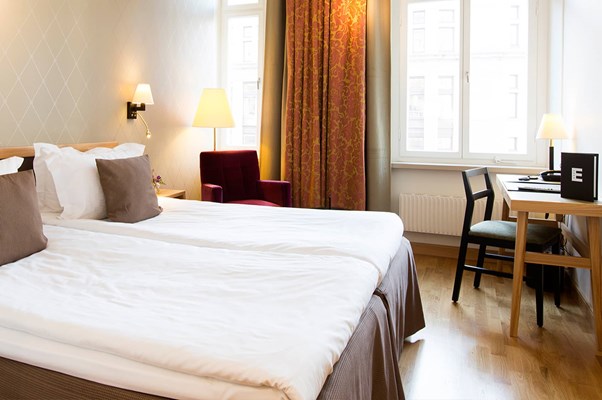 4-stjernet hotel i flot historisk bygning i det centrale Stockholm. Hotellet har egen restaurant og bar. Alle værelser har eget bad og toilet. WiFi